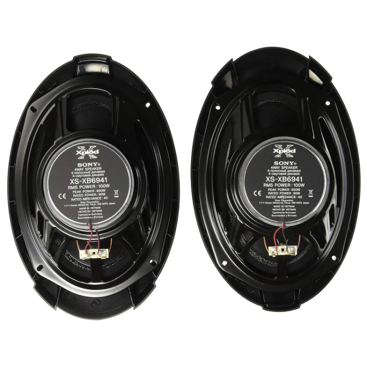 وقتی قصد خرید یک سیستم صوتی مناسب خودرو را داریم، بدون شک وجود یک بلندگوی باکیفیت نقش موثری دارد. هرچه این بلندگو بهتر باشد، صدایی با وضوح و کیفیت بالاتر را خواهید شنید. مدل « XS-XB6941» یکی از بلندگوهای ساده و خوشساخت برند (SONY) «سونی» است که به دلیل امکانات خوبش، با استقبال خوبی مواجه شده است. این بلندگوی بیضیشکل با سایز 6×9 اینچ ساخته شده است؛ مانند اکثر اسپیکرهای بیضیشکل، بهصورت یک جفت ارائه میشود. برای اشاره به کیفیت محصول باید گفت که این بلندگو 650 وات بیشینه صدای خروجی داشته و بهصورت FourWay با بکارگیری یک ووفر، یک میدرنج و دو توییتر ساخته شده است که قادر به تولید صدایی با وضوح بالا است. همچنین پاسخ فرکانسی 35 تا 22000 هرتزی این بلندگو شما را قادر میسازد تا بهراحتی بتوانید اکثر صداهای تولیدشده را بشنوید. بهعلاوه امپدانس 4 اهمی و حساسیت 89 دسیبلی این مدل، کیفیت آن را تصدیق میکنند.