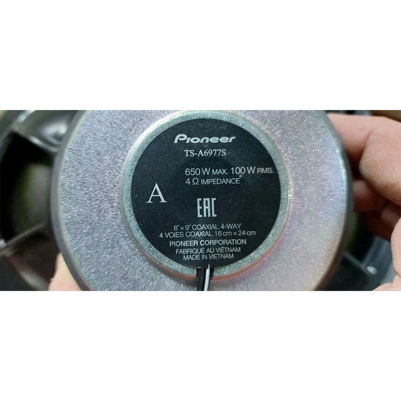یکی از بهترین باند پایونیر ، بلندگوی TS-A6977S شرکت پایونیر است که از یک ووفر، یک میدرنج و یک عدد تیوتر و یک عدد وپرتیونر تشکیل شده است. بلندگو TS-A6977S جایگزین مدل 6976S و 6975S شرکت پایونیر است. بلندگو ماشین TS-A6977S یکی از بهترین گزینههای شرکت پایونیر برای استفاده در سیستمها ساده و بدون آمپلی فایر خواهد بود. این اسپیکر بیس مناسبی به مخاطب خود میدهد و برای ماشینهایی مانند پژو در کنار 1680 ( در داخل دربهای جلو) گزینه مناسبی برای استفاده است. ابعاد این کالا در حدود 340x300x160 میلیمتر است. وزن آن نیز در حدود 4000 گرم خواهد بود. این اسپیکر دو عددی است، 650 بیشینه صدای خروجی آن است. عمق نصب آن 163x237 خواهد بود و فرکانس پاسخگویی این اسپیکر 22-24000 هرتز است. این بلندگو از نوع بیضی یا خربزه ای است.